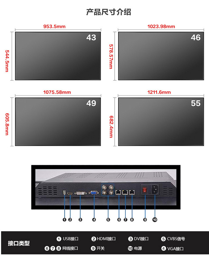液晶屏尺寸      55 寸TFT真彩液晶屏