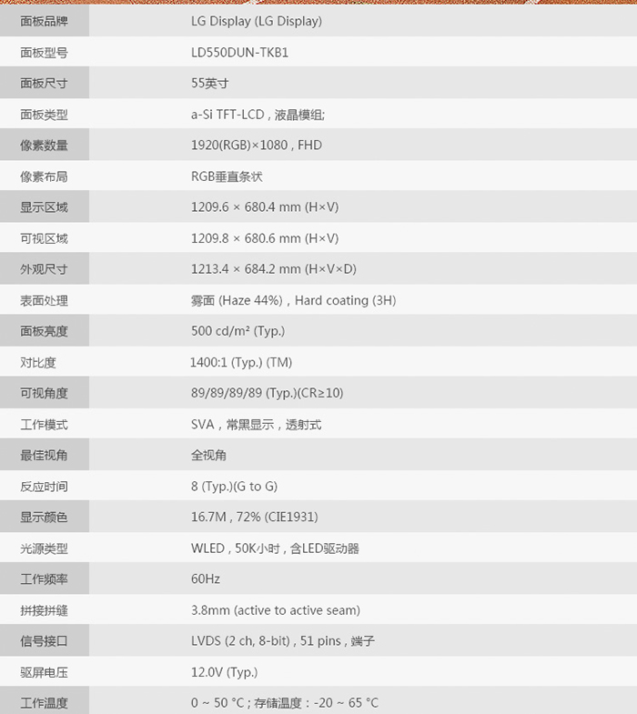 液晶屏尺寸         55 寸TFT真彩液晶屏