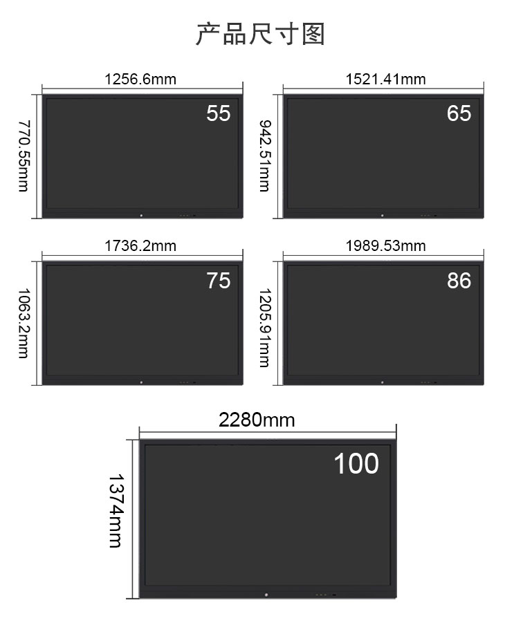 液晶面板 | 尺寸 | 43/55/65/75/86(可定制) |