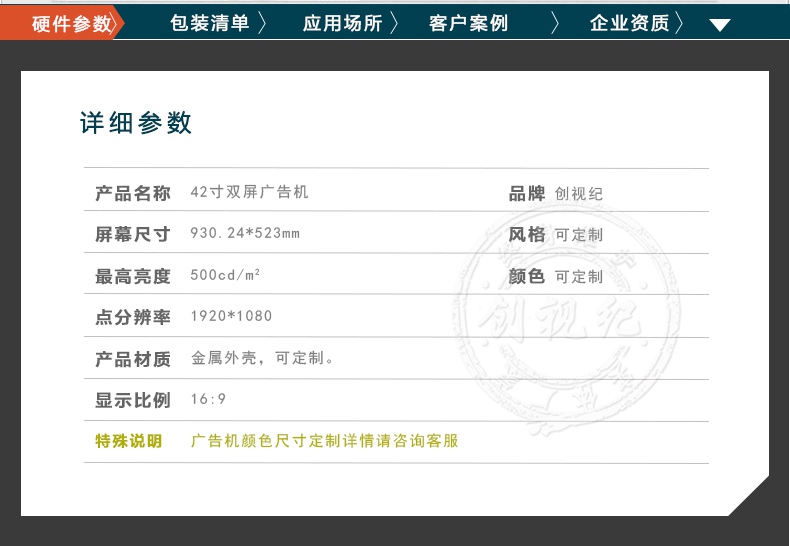 產(chǎn)品名稱:42寸立式雙屏廣告機           品牌: 創(chuàng)視紀