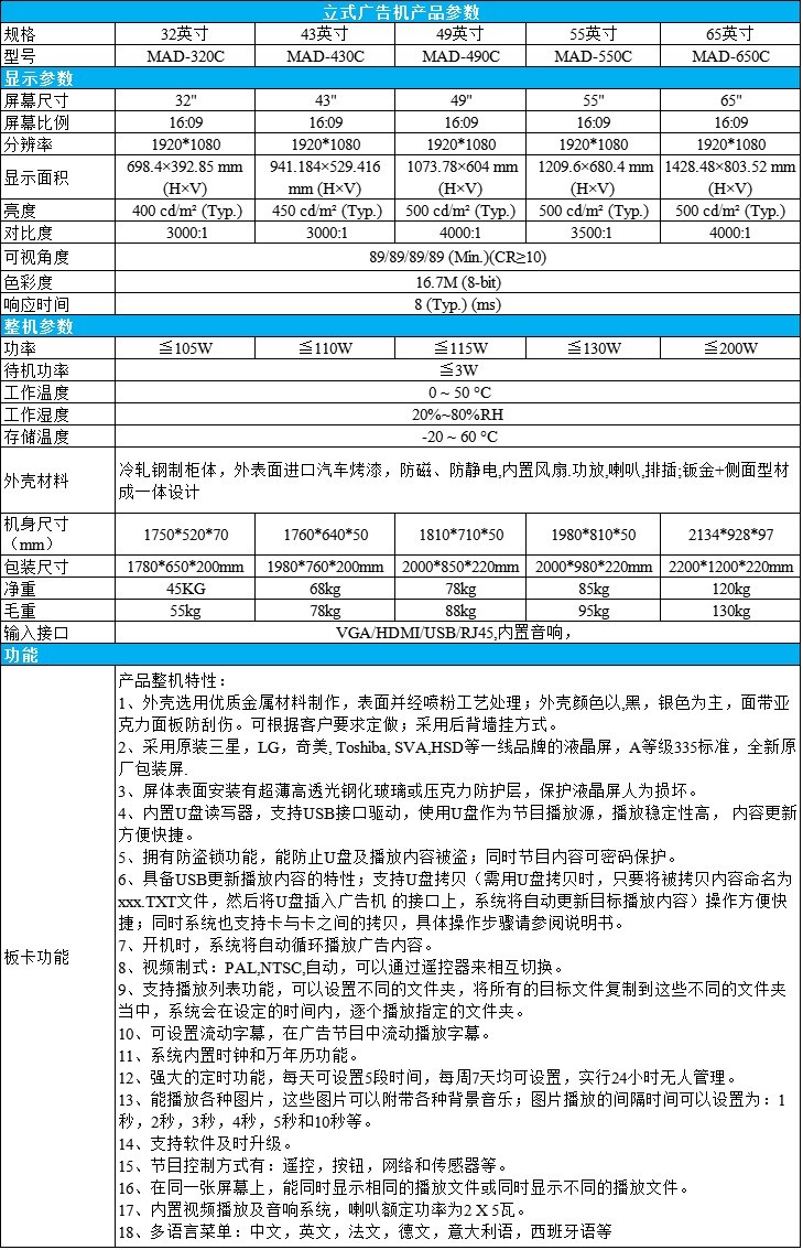 • 49/55/65英寸落地式廣告機(jī)