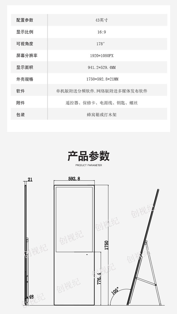 • 43寸斜面酒店餐廳電子水牌