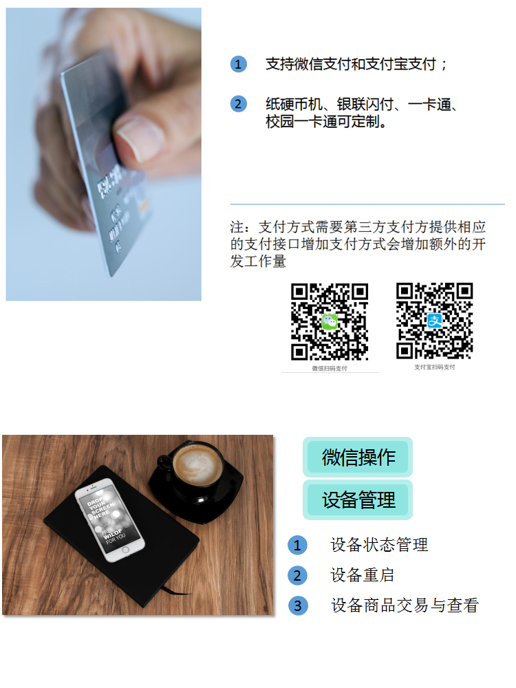 目前市場上已經(jīng)成熟推出,飲料自動(dòng)售貨機(jī),景區(qū)自助售取票機(jī),咖啡飲料飲水一體機(jī),盒飯自動(dòng)販賣機(jī),