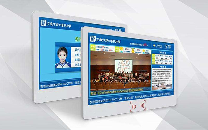 電子班牌是當(dāng)今校園文化建設(shè)、數(shù)字化建設(shè)的系統(tǒng)之一,是學(xué)校日常工作、班級(jí)文化展示和課堂教學(xué)管理等實(shí)現(xiàn)智慧校園的應(yīng)用載體。常規(guī)的電子班牌均是安裝于教室門口,顯示班級(jí)信息,當(dāng)前課程信息,班級(jí)活動(dòng)信息以及學(xué)校的通知信息,實(shí)現(xiàn)了學(xué)校日常工作與環(huán)境美化的完美融合,為全方位培育和打造校園文化環(huán)境提供了一個(gè)窗口。