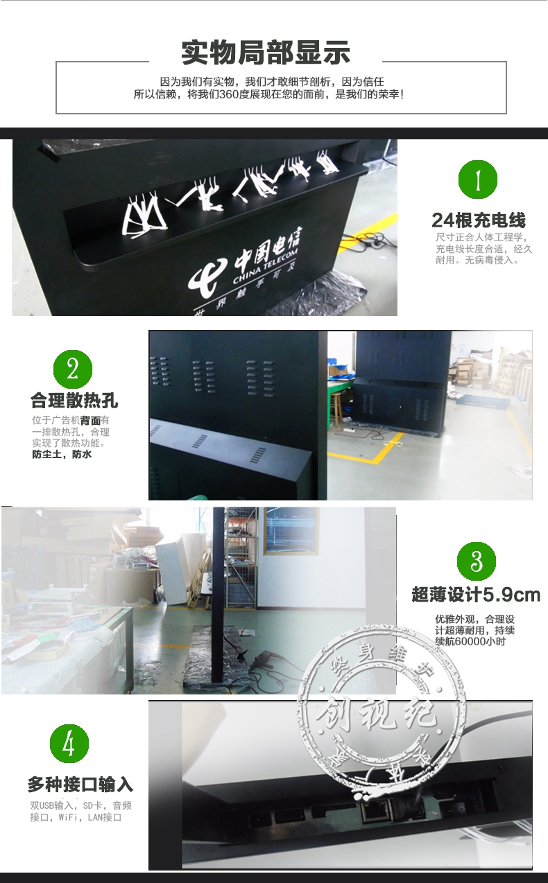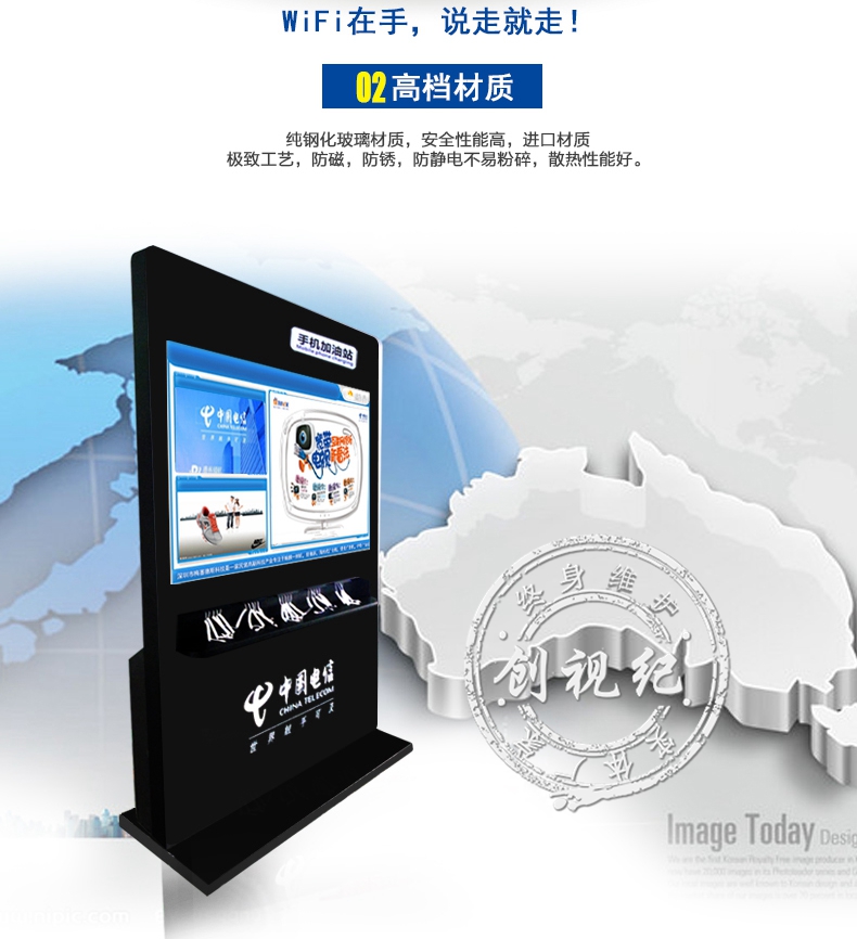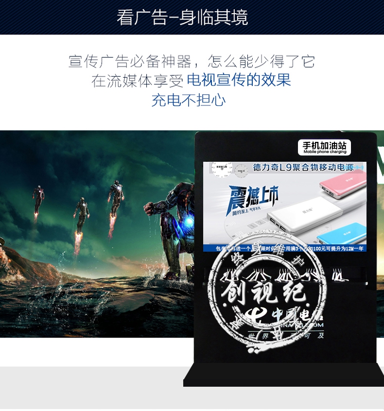 • 65寸電信充電廣告機/充電必備廣告機/手機充電加油站
