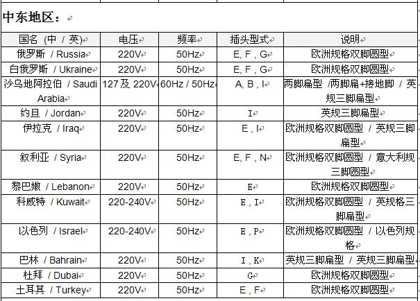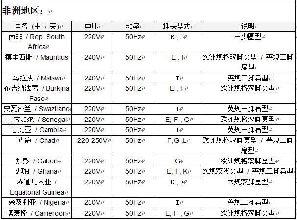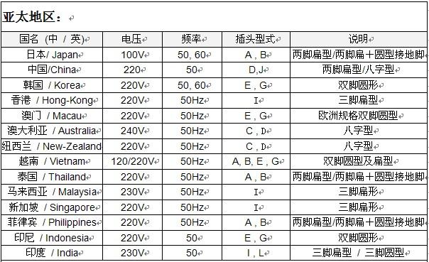 1、 世界各國電壓概況: