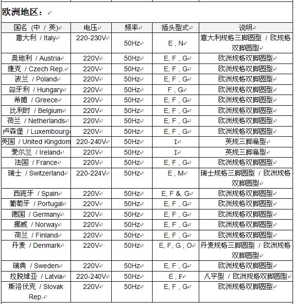 創(chuàng)視紀(jì)世界各國電壓及電源插頭